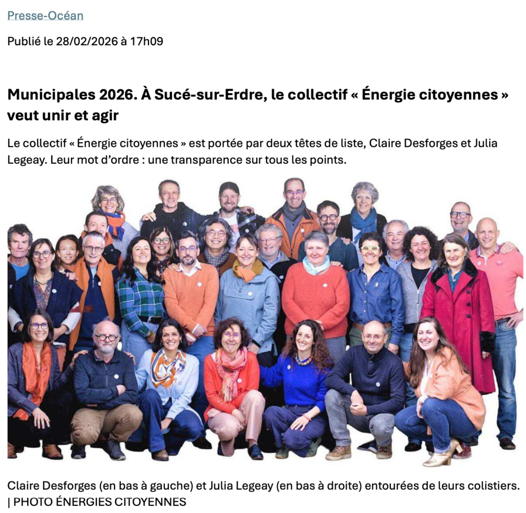 Municipales 2026. À Sucé-sur-Erdre, le collectif « Énergie citoyennes » veut unir et agir
